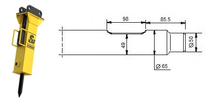 Kompatibel mit den Modellen Arrowhead S60. Die Modelle R40 bis R80 ersetzen die älteren Modelle S10, S20, S40 und S60. Die Schneide des Meißels steht quer zum Baggerausleger, außer beim Asphaltspatens, der parallel dazu steht.