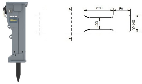 Kompatibel mit den Modellen Atlas Copco / Epiroc EC 140 T / MB 1700. Die Schneide des Meißels steht quer zum Baggerausleger, außer beim Asphaltspatens, der parallel dazu steht.