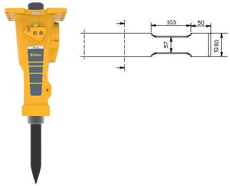 Kompatibel mit den Modellen Atlas Copco SB 52 / SB 55. Die Schneide des Meißels steht quer zum Baggerausleger, außer beim Asphaltspatens, der parallel dazu steht.