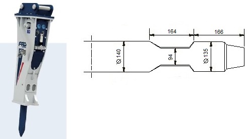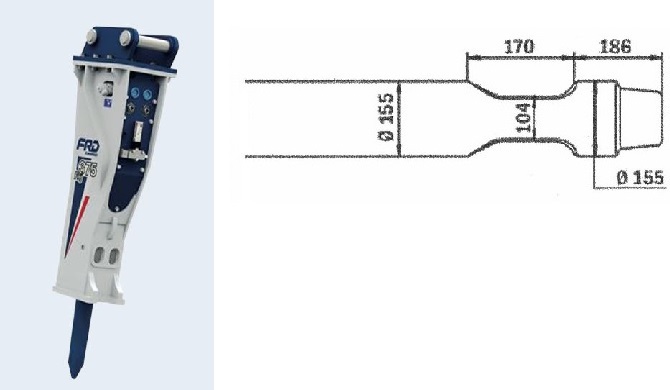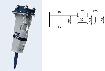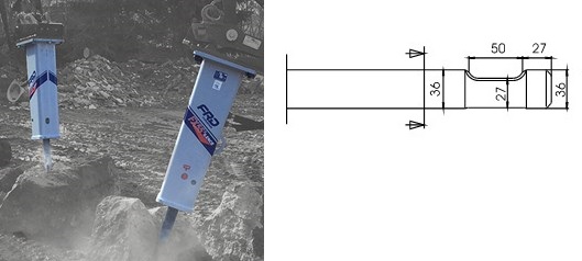 Kompatibel mit den Modellen Furukawa F 4 / FX 45 und KENT KF 4. Die Schneide des Meißels steht quer zum Baggerausleger, außer beim Asphaltspatens, der parallel dazu steht.