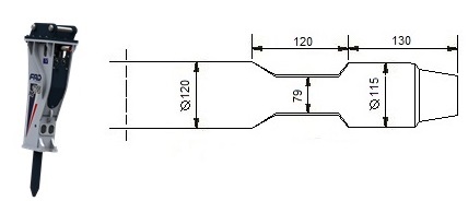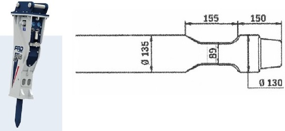 Meissel für hydraulische Hammer FURUKAWA HB 15 G / KENT KHB 150 / 15 GII.