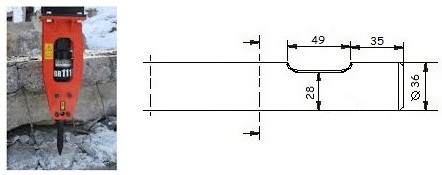 Kompatibel mit den Modellen Rammer 111 / 155 und Sandvik BR 111 / 155. Die Schneide des Meißels steht quer zum Baggerausleger, außer beim Asphaltspatens, der parallel dazu steht.